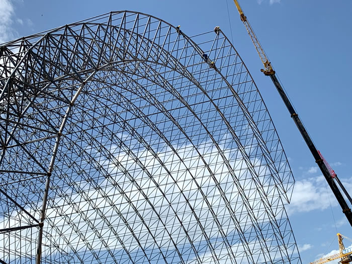 (2)网架加工前应对现场尺寸进行复测,确认无误后方可进行加工、安装;网架制作、运输、安装应遵守《空间网格结构技术规程》JGJ7-2010、《钢网架安庆螺栓球节点》JG/T 10-2009、《钢网架安庆螺栓球节点用高强度螺栓》 GB/T 16939-2016、《安庆钢结构安庆工程安庆施工规范》 GB50755-2012、《安庆钢结构安庆工程施工质量验收标准》 GB50205-2020。